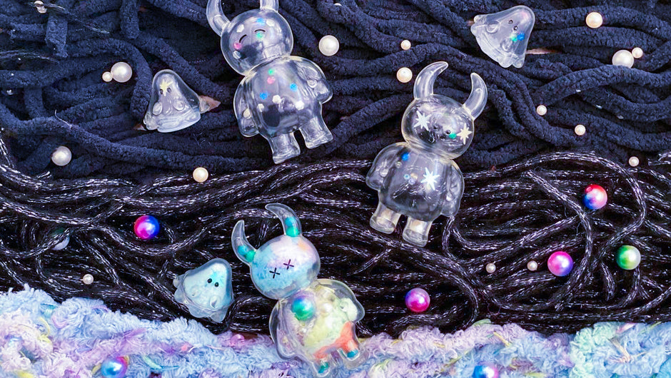 You can make your original UAMOU with a clear body and a prepared fluffy & glittery kit to choose from and to stuff. You can also mix your tiny beads or charm with it. Please don't hesitate to bring your own, if you wish!
