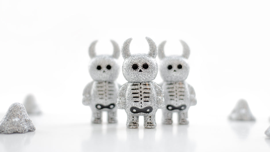 先日リリースしたウアモウとおばけちゃんのソフビ“シルバーラメ”シリーズに続き、スカルウアモウシリーズにも”シルバーラメ”が初登場!!