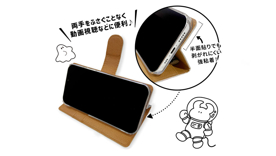 ベルト付きに仕様変更された手帳型ケースはiPhone/Android約300機種以上に対応可能。