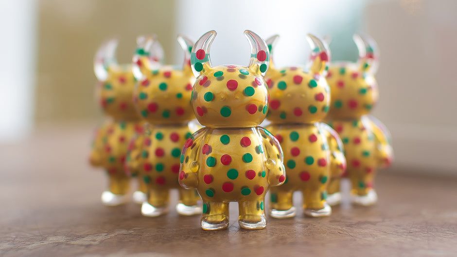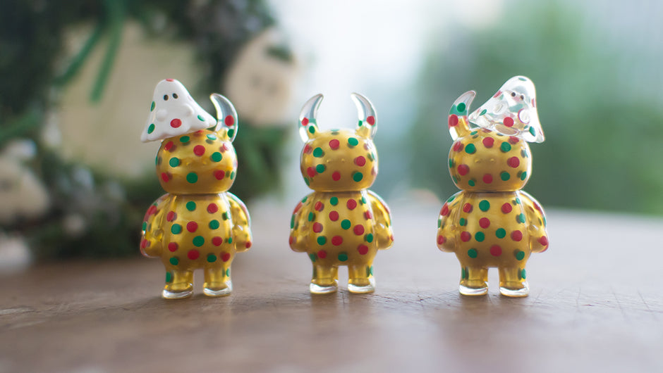 Studio Uamou will participate as well and we have created a small run of Gold Xmas Dot Uamou and Boo to be featured on the show. This series of clear-type Uamou have been painted solid gold from the inside and feature the signature dot pattern by Ayako Takagi on the outside.