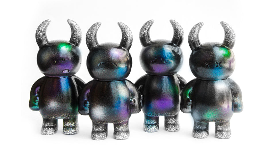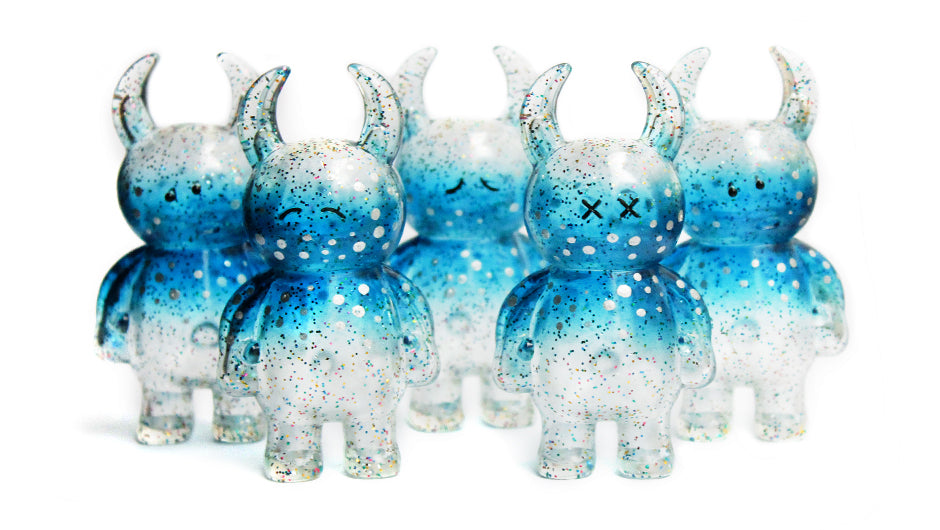 We were asked to create a series of custom Uamou in the black and Faded Galaxy Colour-way, exclusive to the Toy Art Gallery Collection. We have created a pretty Punk-rock, Black Graffiti Colour-way for the black vinyl base and a gorgeous Clear Blue series of Faded Galaxy Uamou. Handpainted by Master Goto and Ayako Takagi these items are truly unique and worth seeking out!