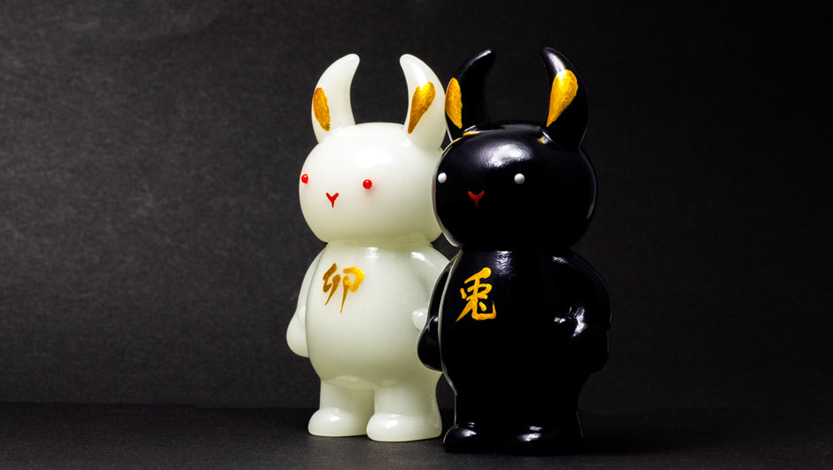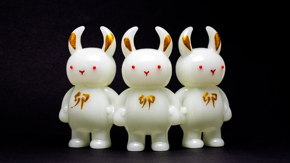 GID one has the Chinese character “卯” which refers to the Chinese zodiac sign for rabbit, and the Black one has "兎" which means real rabbit in English. We hope they can bring you good luck in the new year!
