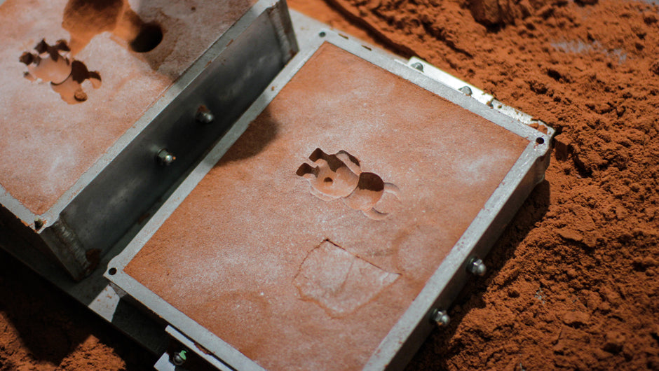 Using red oil sands you can create a perfect temporary mould of whatever object you want to cast, even though it took us a couple of tries before we had a perfect uamou we are very amazed by the tin cast copies. We shall upload some pictures of our tin Uamou later this week for you to enjoy, in the meantime head down to 2k540 today to try the process of tin casting yourself!