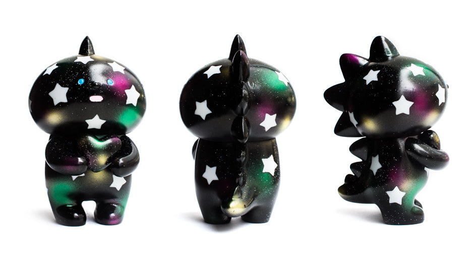 Fluffy House has opened a group show at Everyday Mooonday Gallery in Seoul, Korea. The show “Weather Or Not, We’ll Be There For You” features the new character Dyno. To introduce this cute new character to the audience, a series of customised Dyno figures have been made by different artists. Ayako Takagi participates as eel and has created a Star Galaxy Dynom which is paired wit a Star Galaxy Uamou.