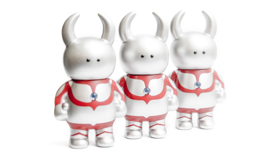 The very first edition of Ultrauamou was in a slight dark shade of grey mask painted in red. Ever since then, Ultruamou has been released in a variety of colour-ways but the very first one always seemed the closest to the Ultraman’s original design (together with the Silver Lamé edition one could argue). Not any more, since the latest release of Ultrauamou is in the iconic Matte Silver and Crimson Red colour-way!