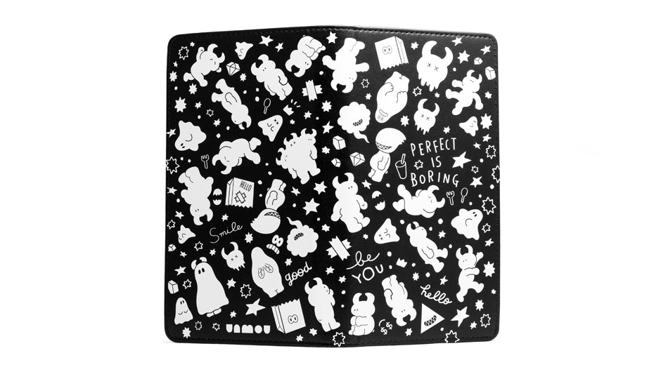 様々なポーズのウアモウと、そのお友達を所狭しと描き込んだ賑やかなデザインは、見るたびにあなたを元気づけること間違い無し!