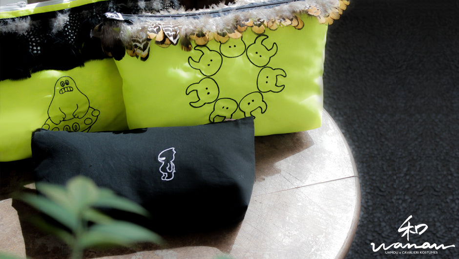 These clutch bags are hand-made by Annelies de Ridder and are decorated with Character by Ayako Takagi. Each clutch bag has several pockets and unique interior lining. Decorated with Uamou, Bastard and even the yet to be released Mr.Dump, these bags are truly one of a kind!