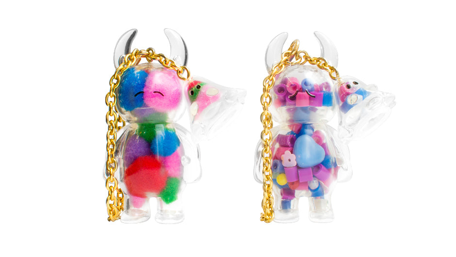Choose one “Clear Uamou” from figure, key ring, bag charm and fill it up with a wide collection of colourful bijoux and accessories to create your very own unique Uamou and with the help of the perfectly fitting Boo Cap you can customise Boo as well!