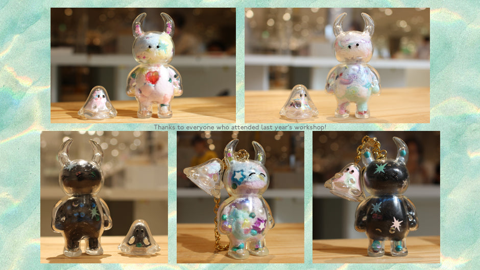 You can make your unique UAMOU with a clear body and a prepared fluffy & glittery kit to choose from and to stuff. You can also mix your tiny beads or charm with them to make UAMOU truly unique. Please don’t hesitate to bring your own, if you wish!