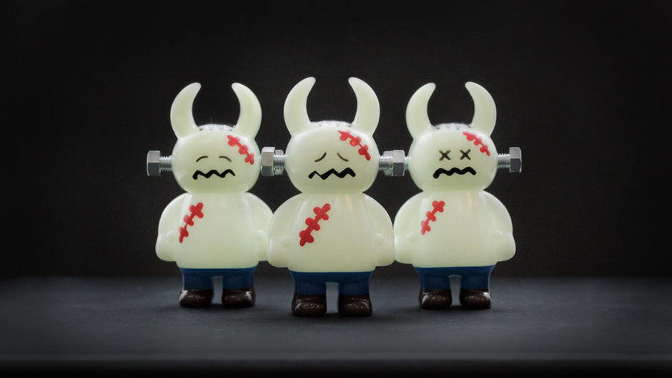 The new edition of GID Frankenuamou wears blue jeans and is painted by hand by Ayako Takagi. Each single one offers a different facial expression and comes together with his buddy Frankenboo. Please choose the one you like most!
