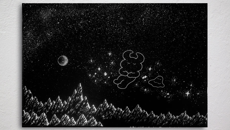 This painting was commissioned By Ayako's Grandfather to feature a sky with a thousand stars. The work consists out of two panels each measuring 54 cm x 84,5 cm and they can be enjoyed regardless of order.