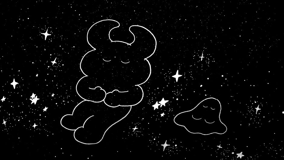 満天の星空に浮かぶ、ウアモウとおばけちゃんそしてノーバディ。