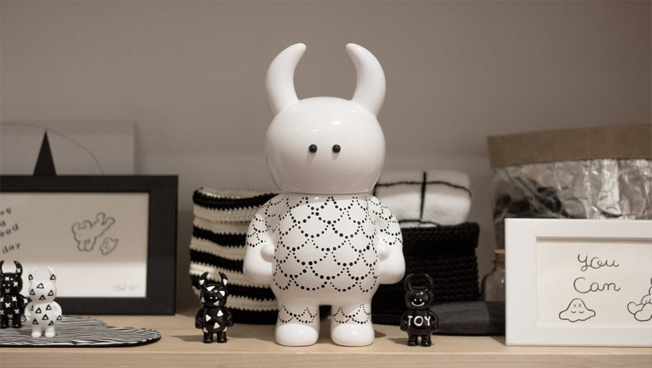 The comfort of your own confines, a space of your own. Ayako Takagi returns to Gallery Voilld where she has created a room based on the creative world of Uamou, a safe and comfortable space giving you an intimate look inside the universe of the pure-hearted alien and his friends. Over 200 unique pieces are on display including hand painted soft vinyl, painted works and other curiosities.