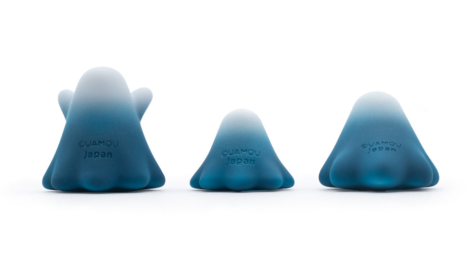 ほわっと雪化粧した3種の富士山おばけちゃん。塗装の特性上、色味や濃淡に個体差が生じる場合がございます。個体差を理由とした交換・返品はお受けできませんのであらかじめご了承くださいませ。